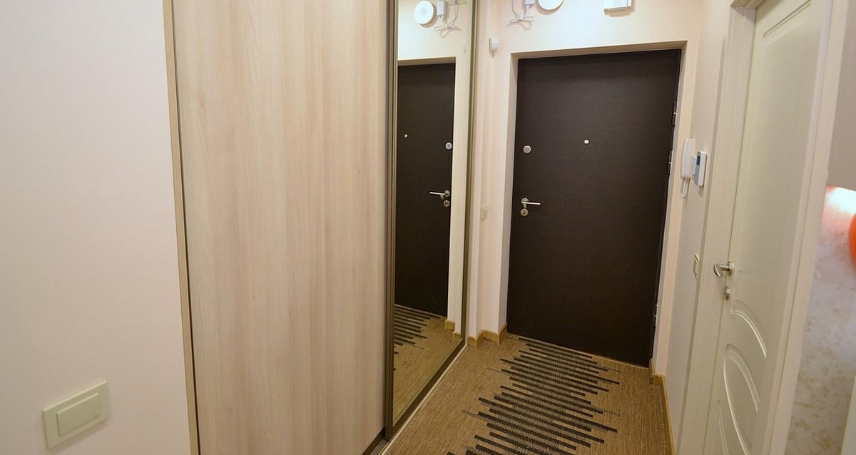 Entryway: Features a spacious mirrored wardrobe.